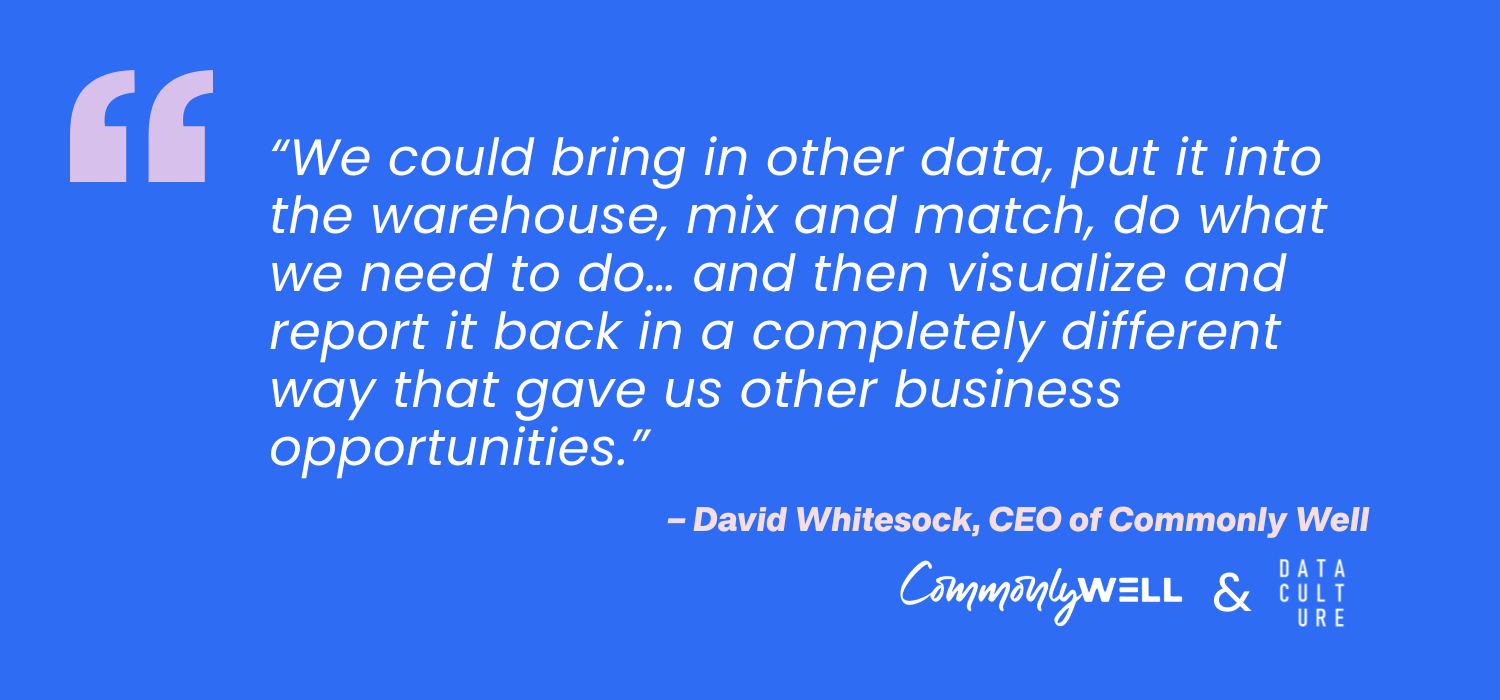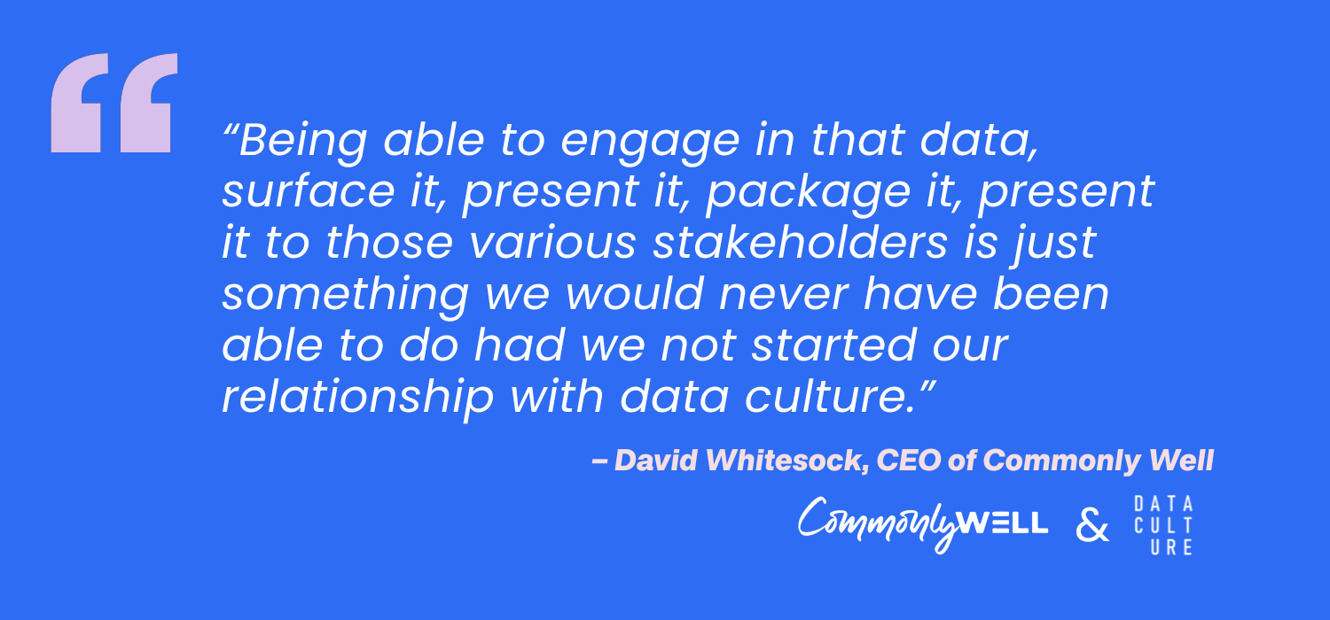 Commonly Well started to win high-stakes contracts with customers in universities and governments because their products were built in secure tools like Snowflake and Sigma. Data Culture ensured everything was HIPAA-compliant, and Commonly Well was able to pass through approval processes faster.