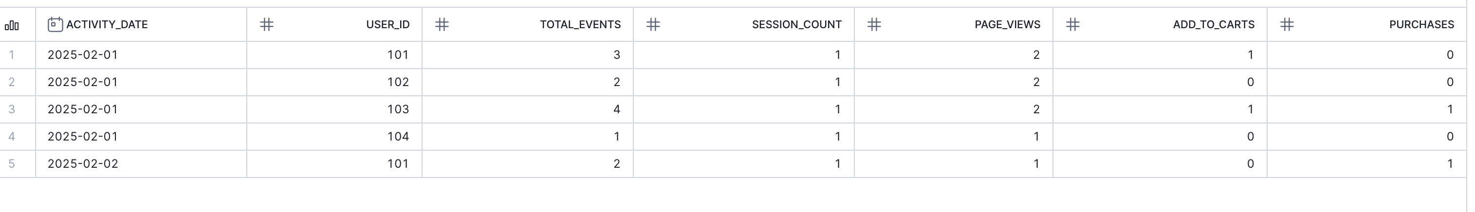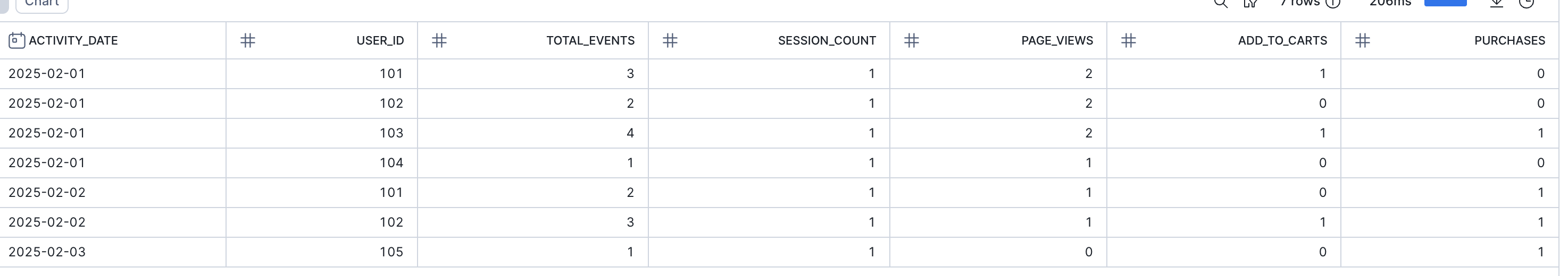 Now let's create a Dynamic Table that summarises daily user activity: